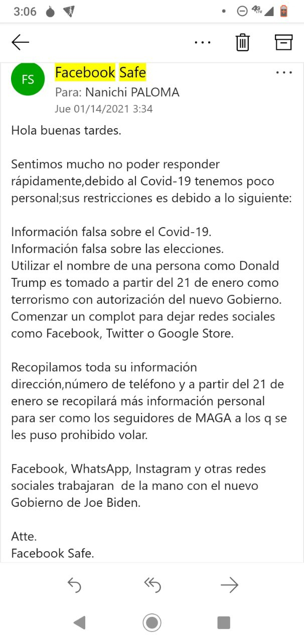 El anuncio de q conservas privacidad es mentira. Ya estaban robando e investigando información. En el mensaje que publique anteriormente sobre el Testimonio de otra persona sobre Persecución; ya a toda una clase de la universidad le habían bloqueado los celulares y al profesor, q irónicamente es profesor de política, le cortaron todo por compartir información real. Esto paso en teléfonos de Puerto Rico. Estados Unidos y sus territorios corren con la misma situación y los que controlan estas aplicaciones tienen acuerdos con la administración presente.